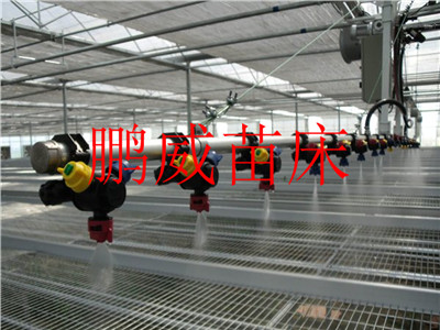 行走式喷灌机是将微喷头安装在可移动喷灌机的喷灌管上,并随喷灌机的行走进行微喷灌的种灌溉设备。在温室中采用行走式喷灌机,不仅可以减少输水管道和微喷头的数量,从而降低设备成本,更主要的是能够通过喷头密集排列,使滴落在地面的喷洒水达到理想的分布均匀度,直接喷洒就能获得良好的灌溉效果。性能优良的行走式喷灌机喷洒水在地面分布的均匀度可达90%以上(普通固定式喷灌或微喷灌系统喷洒在地面分布均匀度可达70%左右),因此完全适合采用容器栽培以及需要高喷洒均匀度的温室生产中使用。因此,行走式喷灌机正越来越多的应用在现代温室生产中。
